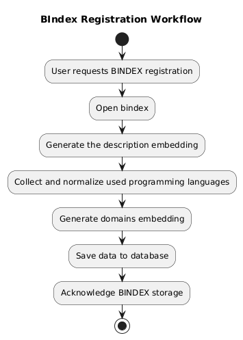 The BIndex Register process is a critical step in the Machanism platform's AI Assembly framework. It involves processing, and storing the bindex.json file, which acts as the foundation for automated library discovery, selection, and integration. This process ensures that libraries are properly indexed and can be efficiently retrieved through semantic search based on user requirements. Below is a detailed breakdown of the BIndex register process: